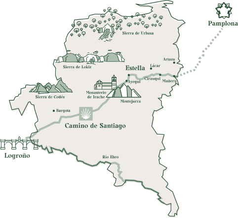Nos encontramos en la franja occidental de Navarra, rodeados de la Sierra de Urbasa al norte, la Sierra de Lokiz actuando como un fortín que nos protege de los fríos cantábricos y, por último, la Sierra de Codés, más al oeste, que hace de frontera natural con La Rioja y Álava, lo que convierte a Tierra Estella en una zona con un marcado relieve y un clima mediterráneo con influencias atlánticas.